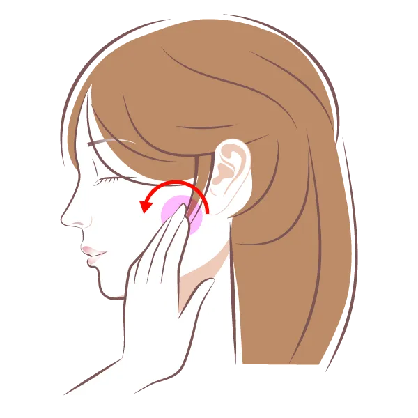 指全体で耳の前あたりを、後ろから前へ円を描くようにマッサージします。