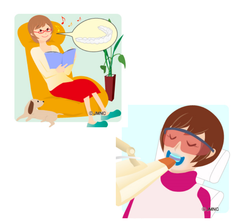 高濃度のホワイトニング剤を用いた上で、レーザーを当てることにより薬剤の効果を高めた方法で、ホームホワイトニングよりも短期間で済みます。